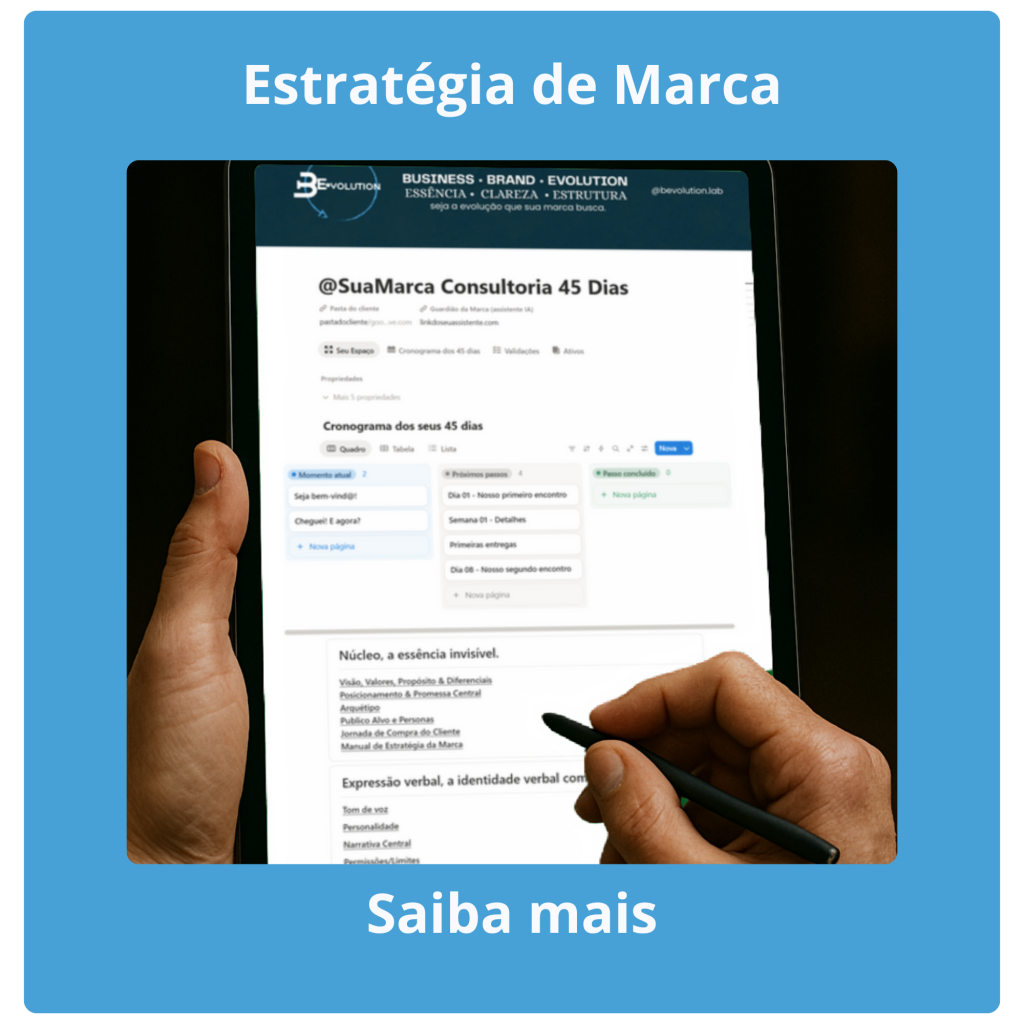 Resultado: direção estratégica e coerência em todas as decisões de marca.